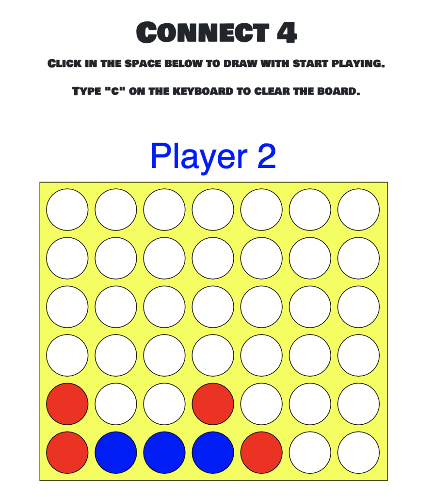 The project itself basically follows the same convention has I’ve already walked through. The “sketch” or graphical part of the Connect 4 game board is done with P5JS.
