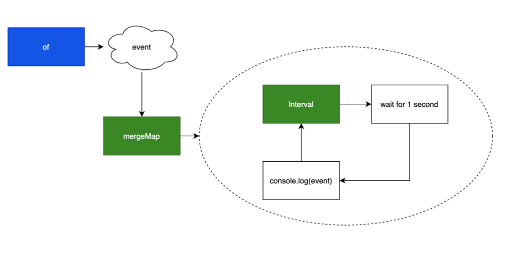 For a better visual of flows with RxJS, many people rely on Marble Diagrams. They’re a little daunting at first, but if you learn how to read them with the RxJS Guide they really help. I recommend checking out the RxJS guide at the bottom of the operators page here.