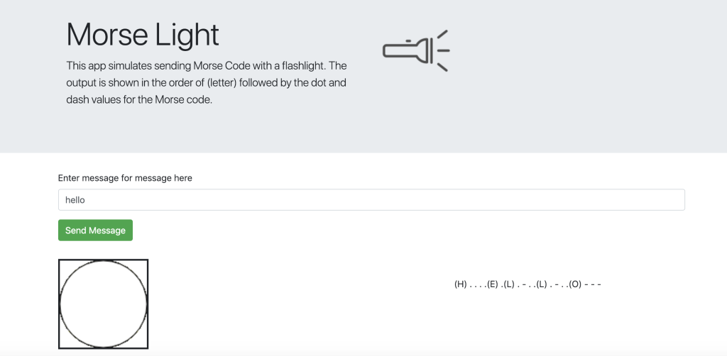 Since I was interested in this, I thought it would be cool to create Morse Code with a program if I could. I Googled this for a little while, and found several people used the Web Audio API to generate Morse Code with Javascript. Then I spent subsequent time reading (and coding) with both Javascript Timers and the Web Audio API playing with different methods of sending messages via light (colors) and sound.